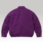 The Supreme Moleskin Work Jacket in purple is a standout piece from the brand’s collection, blending utilitarian workwear with bold color. Constructed from heavyweight cotton moleskin fabric, this jacket offers a soft yet durable feel. The design features a full zip front closure, two large zippered chest pockets, and two lower welt pockets for practical storage. Subtle Supreme branding is embroidered on the left chest pocket, maintaining a clean and minimalist aesthetic. The jacket is finished with button-adjustable cuffs and a straight hem, making it versatile for layering and everyday wear.